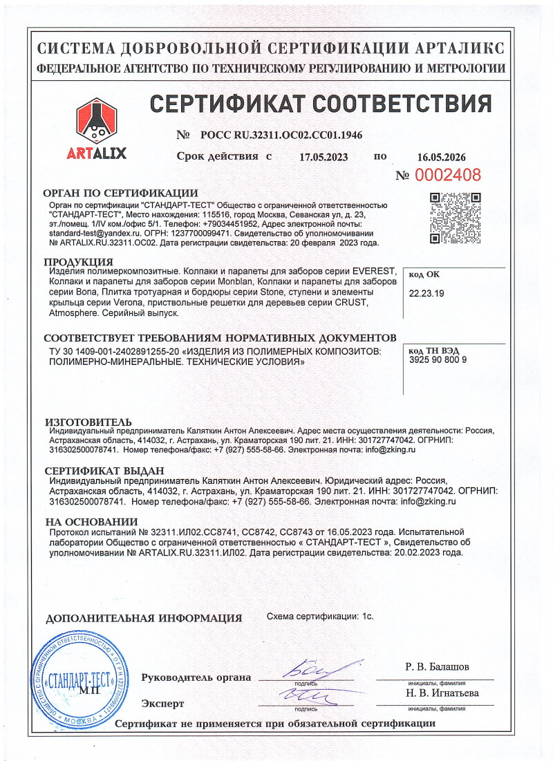 Сертификаты соответствия ZKING для Одинцово